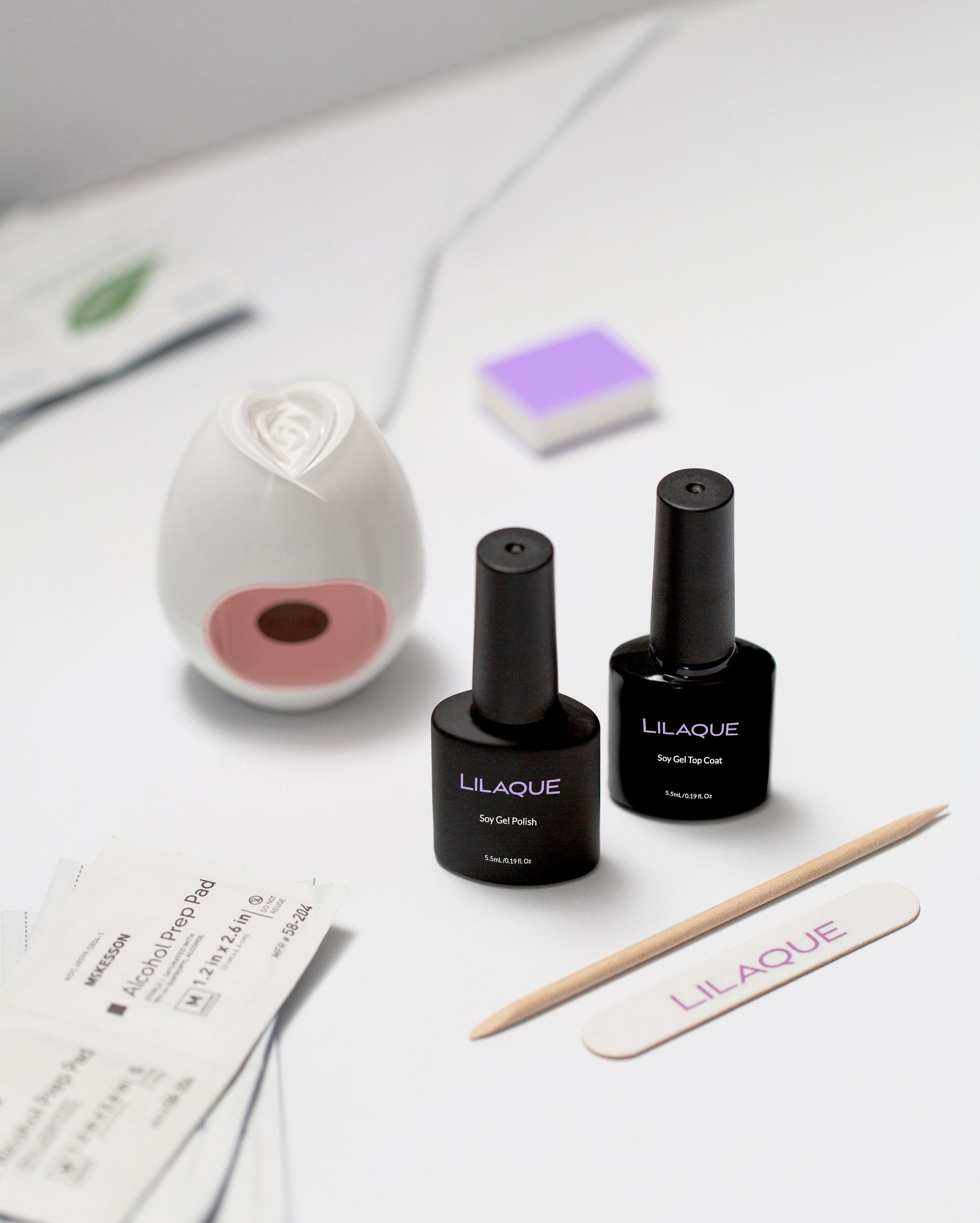 The Lilaque Soy Gel manicure kit includes everything you need to achieve a salon-quality plant-based gel manicure at home in 30 minutes or less. All without the chemical smell of solvent-based polish. A Soy Gel manicure typically lasts 7-14 days when applied as instructed.